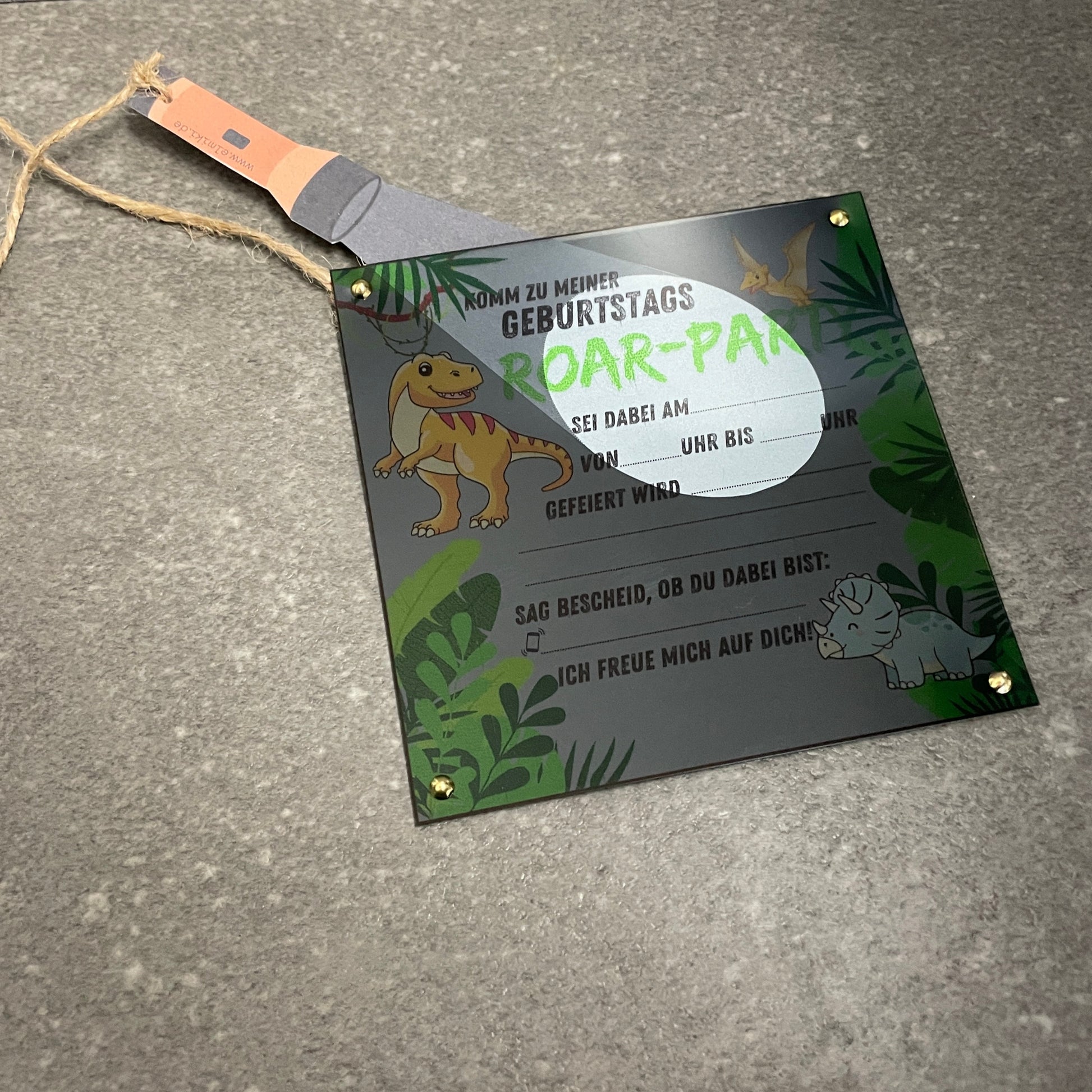 Dino-Einladung mit Taschenlampen-Effekt – spannender Start in den Kindergeburtstag